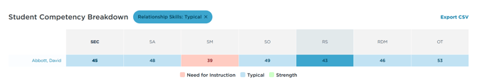 - To clear the filter, click on the X next to the filter next to 'Student Competency Breakdown' (Image 4).