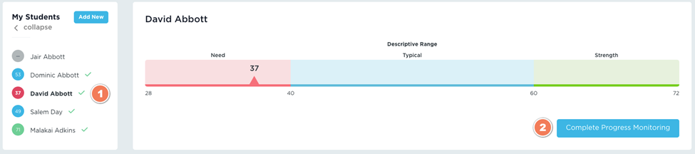 5. Complete the Progress Monitoring Assessment for that student.