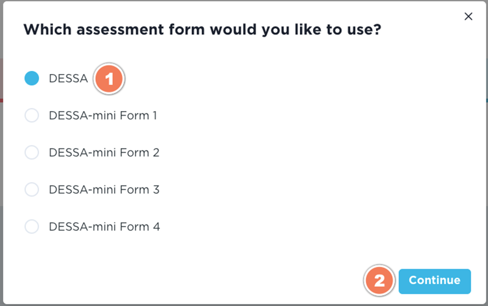 4. Click on the Assessment Form you would like to use and click Continue (Image 2)