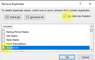 9. On the pop-up window: Select my data has headers and then select Student ID from the list, then click OK (Image 2).