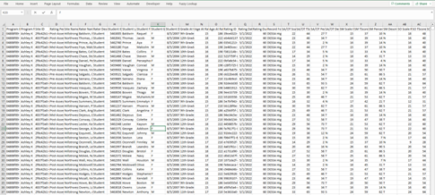 10. Total Number of Students (Program) The data that is left is the total number of students that were rated from your program. You can scroll to see how many rows (minus the header) for the total number of students that were rated in the program (CTL+END or CTL+down arrow) will take you to the bottom of the data without having to scroll) (See Image 6)
