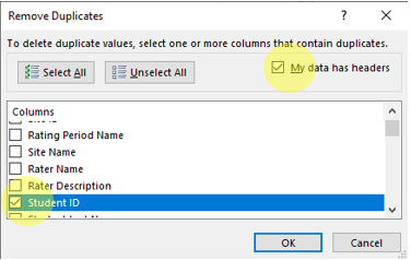9. On the pop-up window: Select my data has headers and then select Student ID. Click OK. (See Image 5)