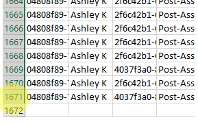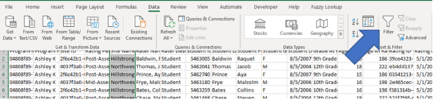 - The data that is left is the total number of students that were rated from the specific site you chose. You can scroll to see how many rows (minus the header) for the total number of students that were rated at this site (CTL+END or CTL+down arrow will take you to the bottom of the data without having to scroll). You can repeat this step for each of the sites to get the total count of students by site.