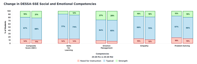 - DESSA-mini forms do not have competencies and will not appear for the Competencies chart.