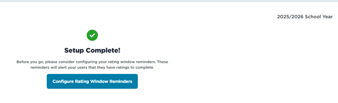 - The last page of the Yearly Setup does not impact when the rating window(s) begin, click Continue, if you see a message that says, "Setup Complete!" then your changes have been saved.