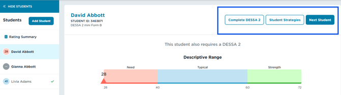 7. Once the rating is complete, you will see a Summary for this student and where that student falls on the Descriptive Range.