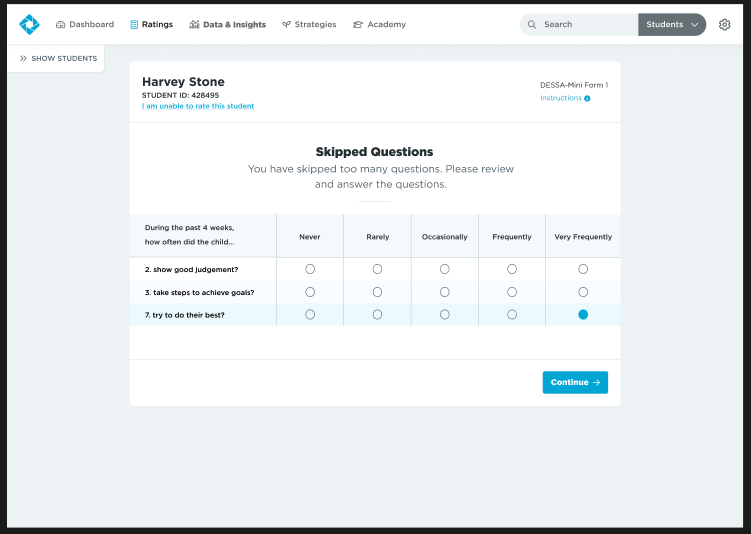 - Skip Question (this is only available on a Full DESSA)