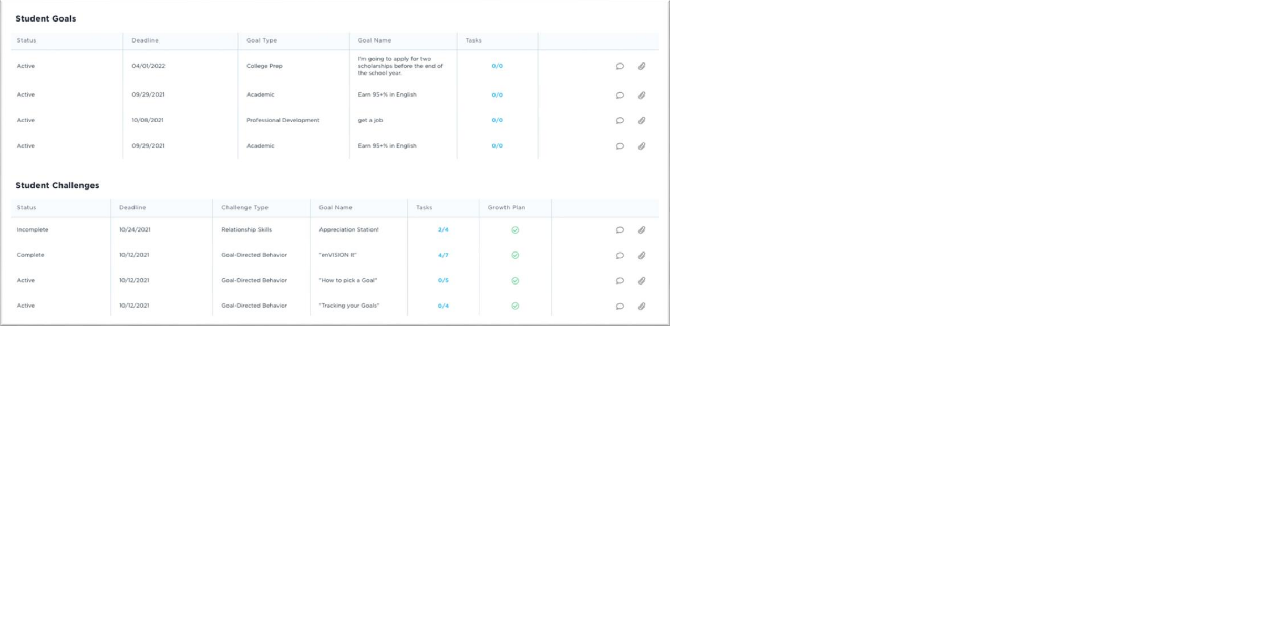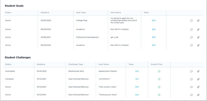 Student Portal: Viewing Student Goals, Challenges, and Progress