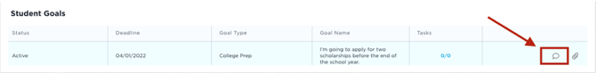 7. Under the Updates section, you can see comments sent by the student, and you can share comments with the student regarding this particular Goal or Challenge (Image 4).