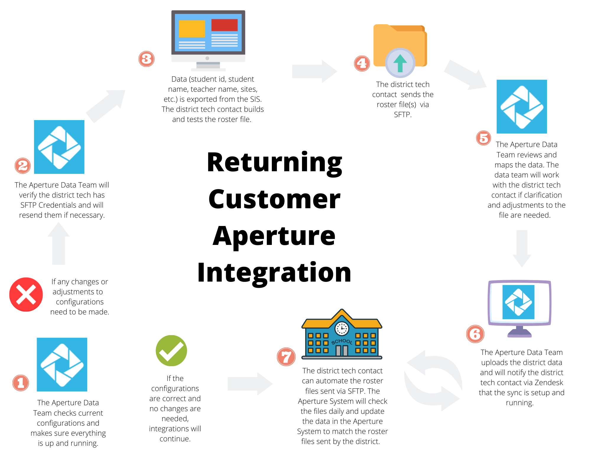 The Process for Existing Customers with an SIS Integration Already in Place Graphic Overview This graphic provides an overview of the integration process for existing customers with a SIS integration already in place. 1.png